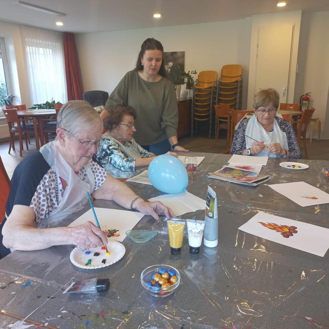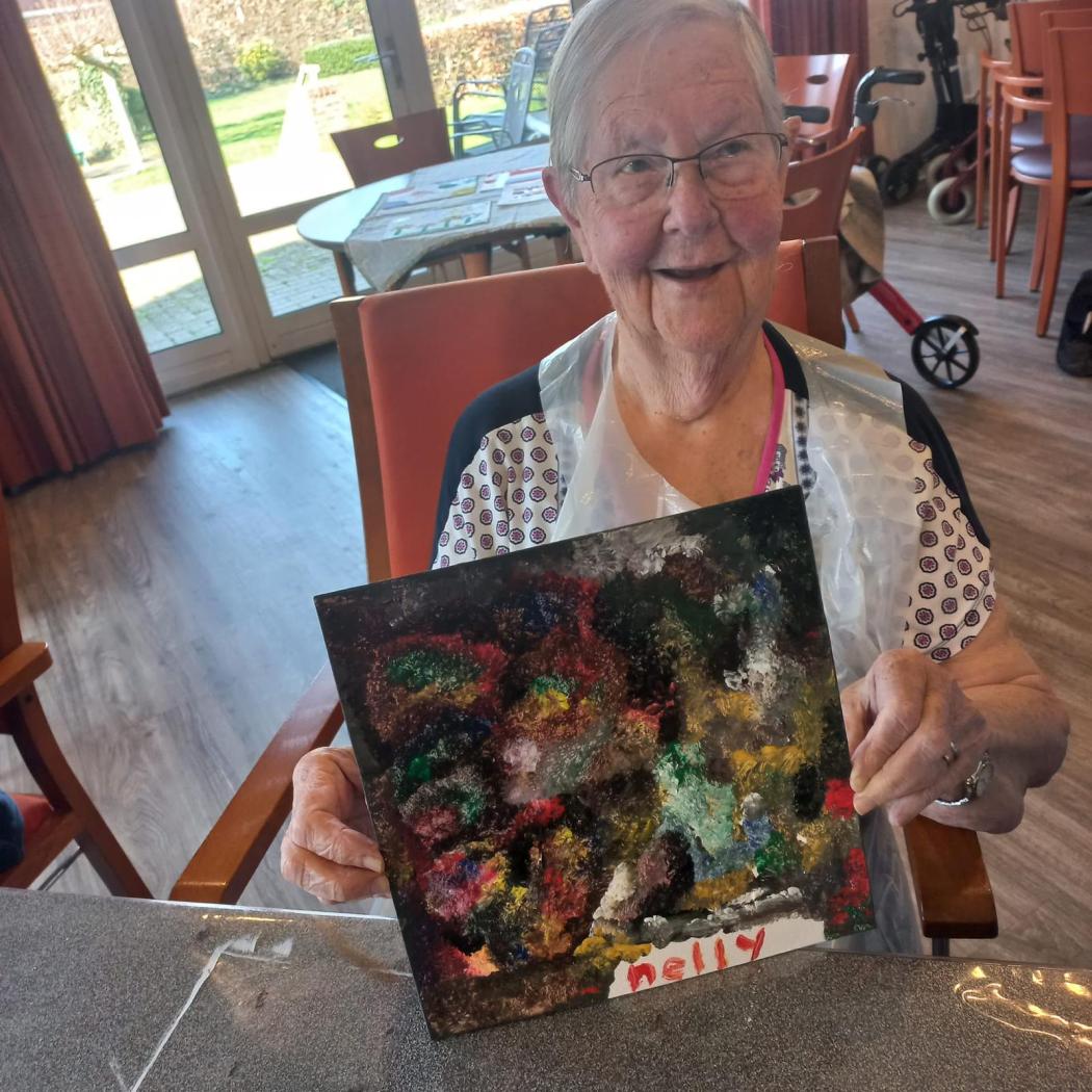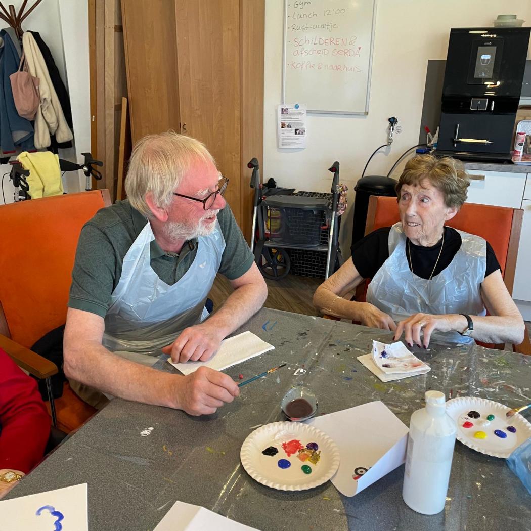 Voorafgaand aan het 'officiële afscheid' hebben we een schilder-activiteit gedaan met de gasten, een grote hobby van Gerda. Nu gaat ze, samen met haar grote liefde, verhuizen en genieten van hun nieuwe thuis.