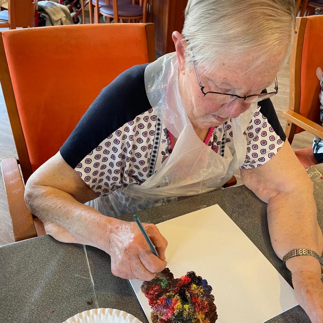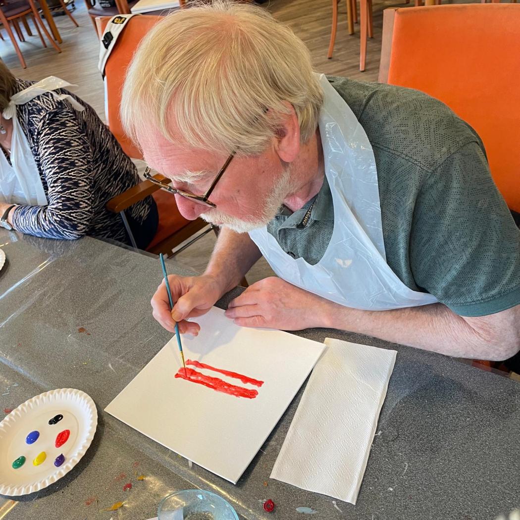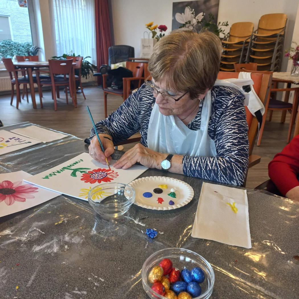Voorafgaand aan het 'officiële afscheid' hebben we een schilder-activiteit gedaan met de gasten, een grote hobby van Gerda. Nu gaat ze, samen met haar grote liefde, verhuizen en genieten van hun nieuwe thuis.